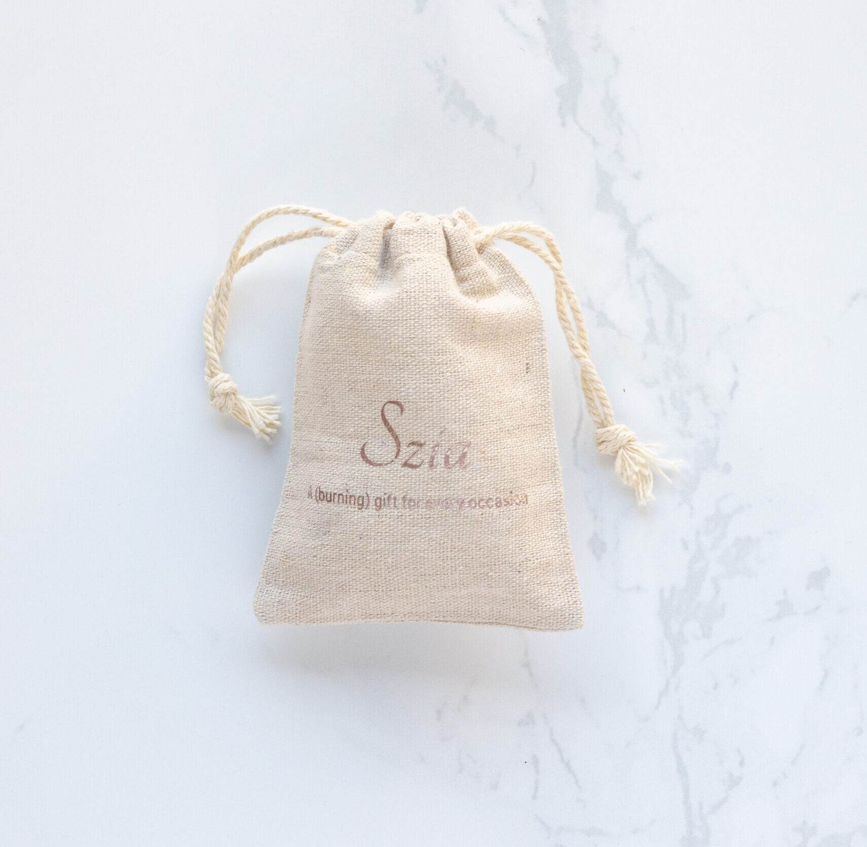 De cadeauverpakking bestaat, afhankelijk van het formaat van de kaars, uit een doosje of uit een linnen zakje,